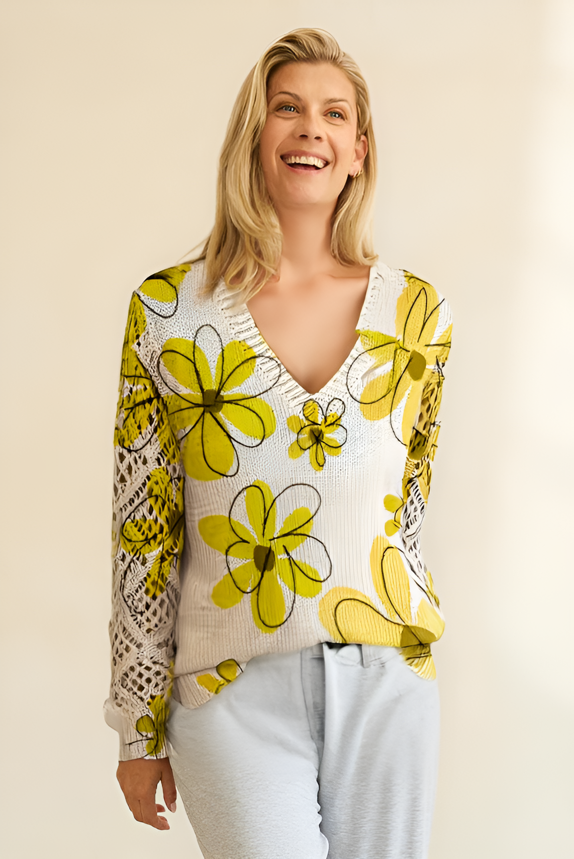 Lange™ | Tyylikäs V-pääntie Pitkähihainen Paita Kukkakuviolla, Boheemi Tyyli, Monikäyttöinen Neule Kaikille Kauden Aikoina Naisille, Täydellinen Toimistoon, Katumuotiin, Kotiin Ja Matkustamiseen, Rentoon Pukeutumiseen | Boheemi Tyyli Paita | Rakenne