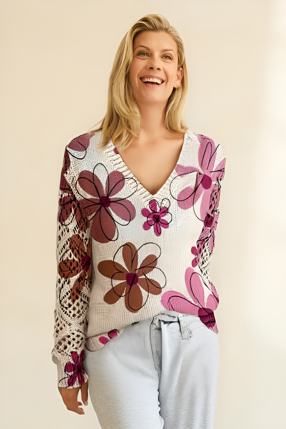 Lange™ | Tyylikäs V-pääntie Pitkähihainen Paita Kukkakuviolla, Boheemi Tyyli